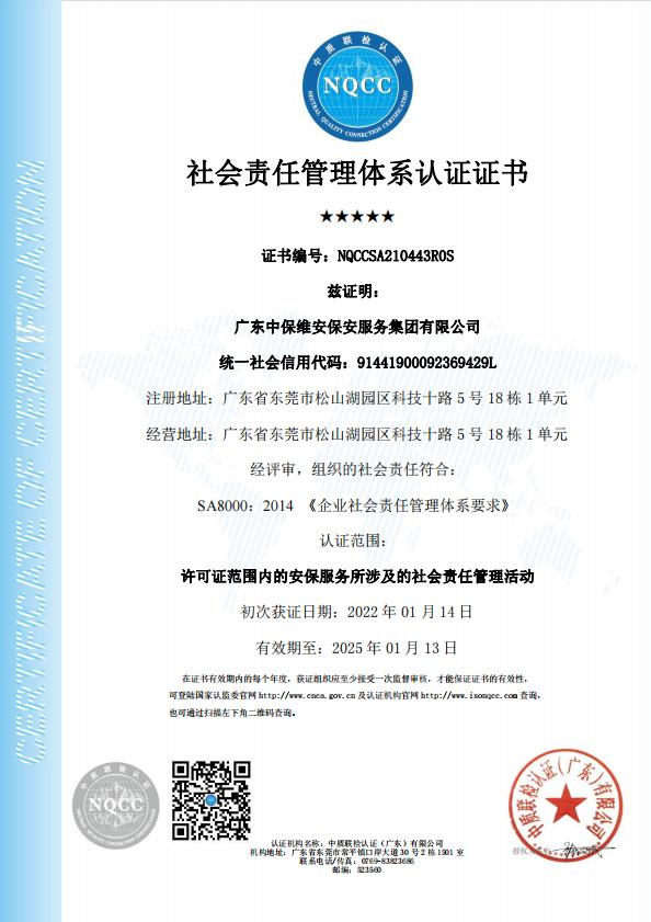 社會(huì)責(zé)任管理體系認(rèn)證證書
