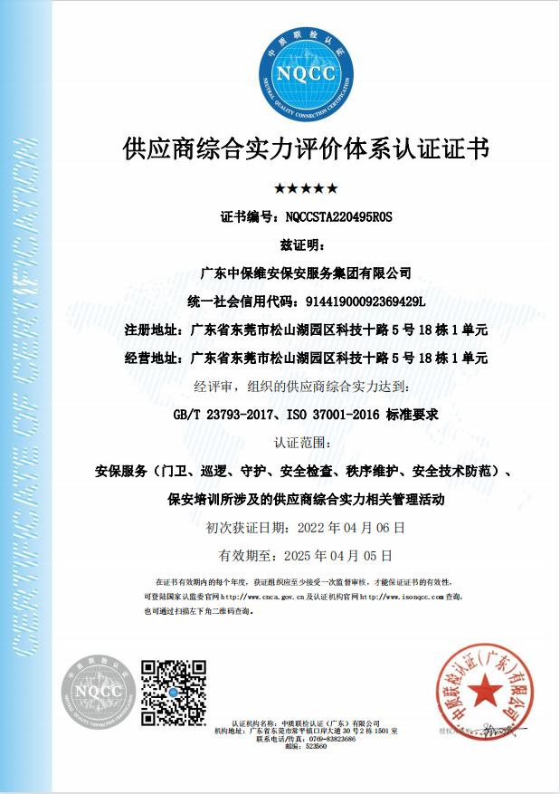 供應(yīng)商綜合實(shí)力評(píng)價(jià)體系認(rèn)證證書