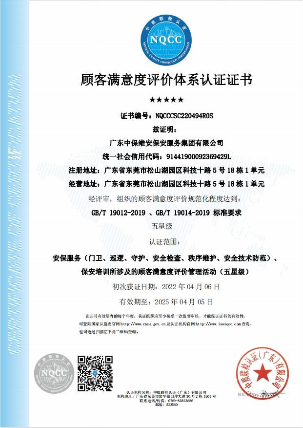 客戶滿意度評(píng)價(jià)體系認(rèn)證證書